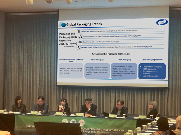 塑膠中心很榮幸受邀出席此次盛會,由技術研究發展部何宏媛專員代表發表專題演講,分享「創新包裝在降低從農場到家庭的食物損失與浪費中的應用」,深獲與會者關注。