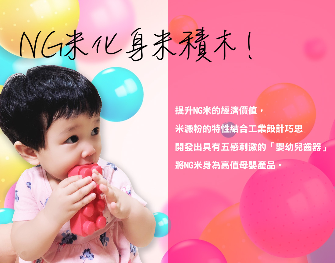資源循環零廢棄:母嬰友善產品開發-NG米化身米積木 【塑膠30週年 - 前瞻永續 · 創新價值】