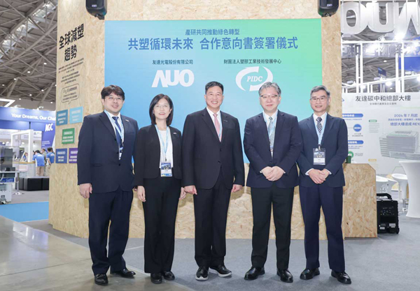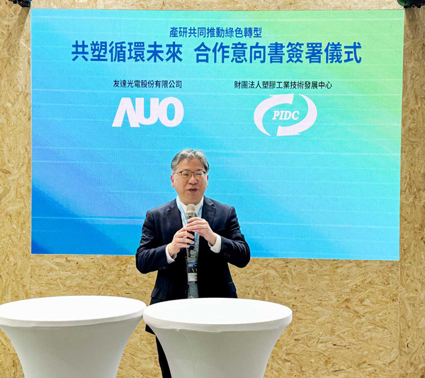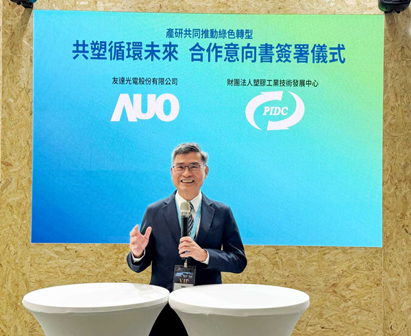 在全球邁向淨零碳排與循環經濟的趨勢下,友達光電(AUO)與財團法人塑膠工業技術發展中心(PIDC)於2025年4月16日,在TOUCH TAIWAN智慧顯示展期間正式簽署合作備忘錄(MOU),此次簽署儀式由資源循環署副署長許智倫見證,象徵著產學研攜手合作,開啟塑膠循環新里程碑。