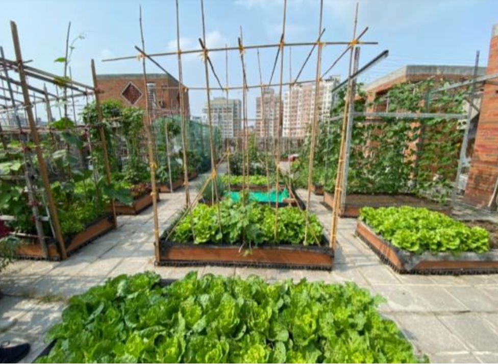 4. 低碳永續社區校園:自2016年起推動「城食森林」,利用可食地景增加綠覆率,除降低熱島效應,更提供新鮮且安全的食物;2020年更結合綠能永續,特別規劃「光電城食森林計畫」,鼓勵民眾利用閒置空間建置都市農耕結合綠能系統,達到節能又減碳的永續都市;而臺中市南區西川里社區,響應城食森林計畫,利用活動中心頂樓大約60坪的空間,開放志工們認領菜園,蔬果收成後,即提供給社區內的長青關懷據點使用。
