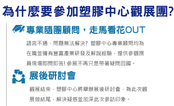 (參加該年塑膠中心觀展團先進可免費參加)