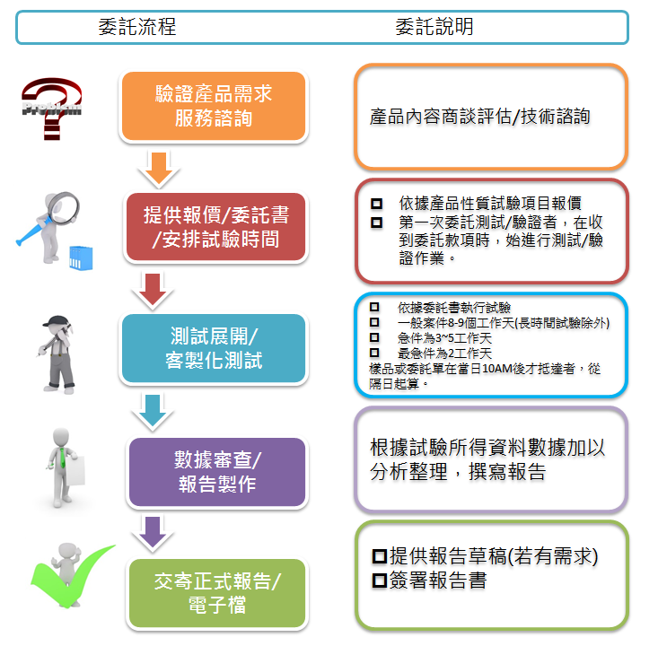 2.第一次委託測試/驗證者,於收到委託款項後始進行測試/驗證作業,醫療器材委託案於試驗完畢付費後,才寄出書面試驗報告。