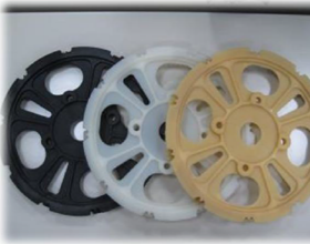 產品應用熱塑型長纖複材粒子可用於特殊結構或形狀之產品,例如倒勾、卡榫、鋸齒狀、不規則形狀、薄型板件等,本中心已將長纖複材應用於射出、熱壓、押出等多種加工製程產品中,並擁有適用於長纖維的螺桿組態及特殊模具內流道設計等相關技術,使長纖產品內有均勻的纖維分佈以維持好的機械強度。目前已輔導多家業者進行熱塑型長玻纖或碳纖之粒子加工成型,主要產品有薄型板件(<10mm)、車用水箱支架、自行車輪盤、鍵盤殼件等。