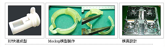 | 產品原型與製程 1.RP快速成型 2.Mockup製作 3.參數設計規劃 4.模具設計評估 |