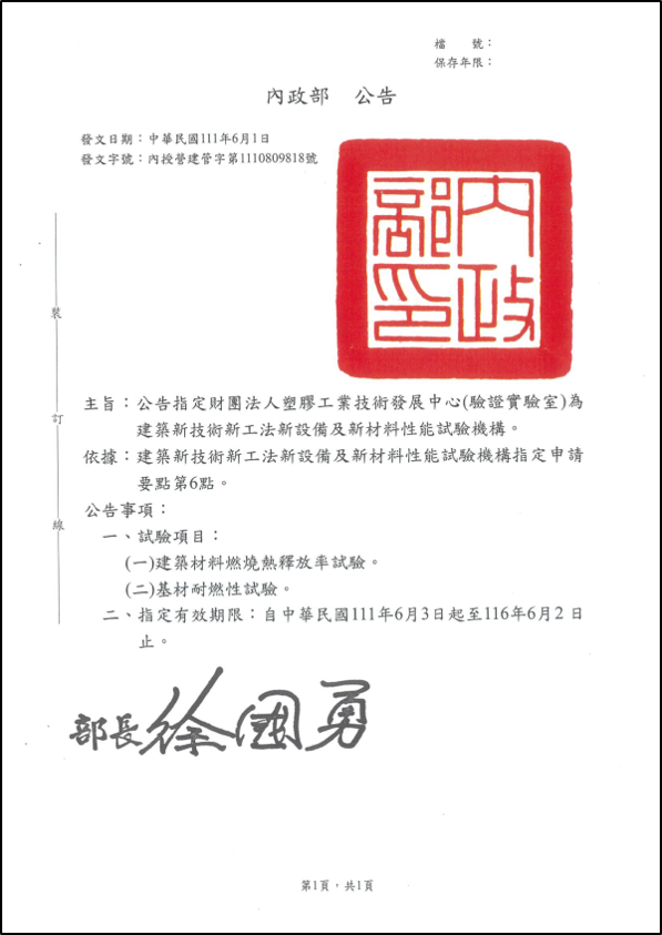 通過「建築新技術新工法新設備及新材料性能試驗機構」