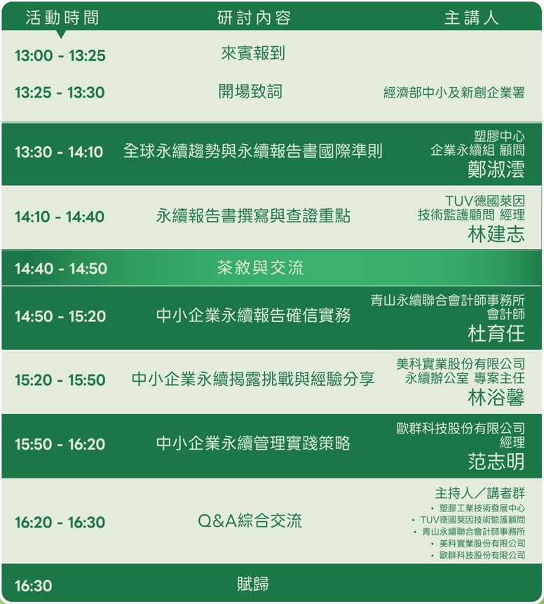 ⏳ 只要半天,帶回跨領域專家與實務案例的完整解答,讓您的企業少走冤枉路,搶先卡位永續新賽局。